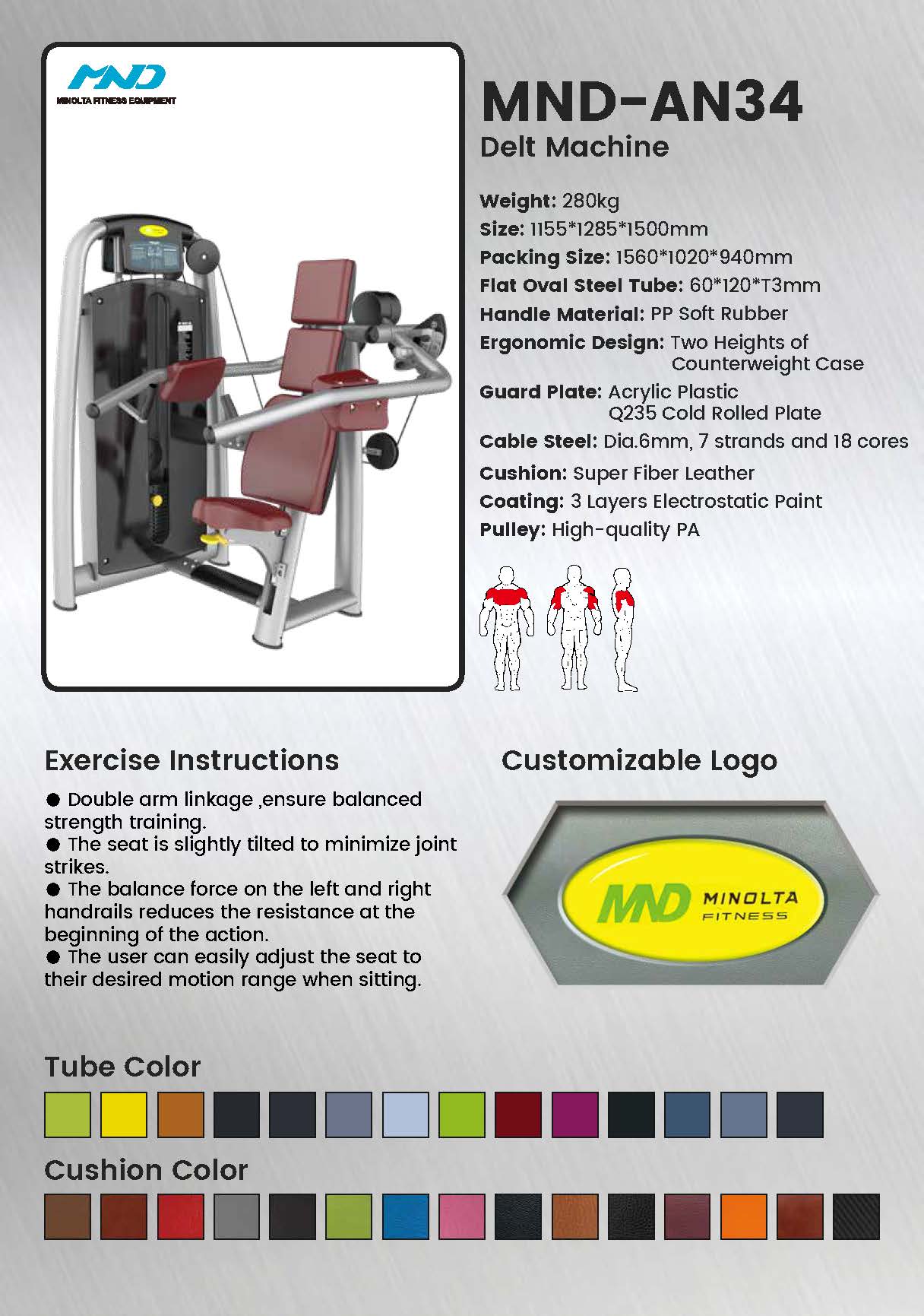 Модель AN34 оснащена инновационной поворотной системой, которая поддерживает постоянное напряжение дельтовидных мышц во всем диапазоне движений. Регулируемые подушечки для рук и прецизионная система кулачков работают вместе, обеспечивая целенаправленное развитие плеч.