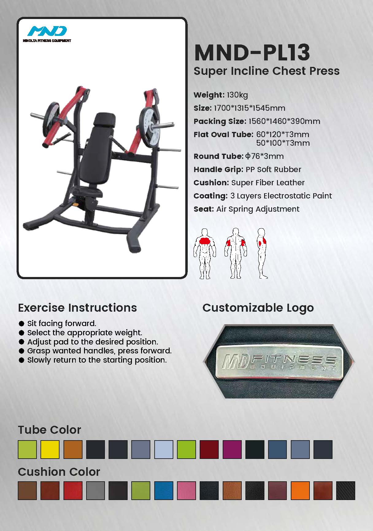 Большинство жимов на наклонной скамье не выполняются достаточно круто, чтобы полностью изолировать верхнюю часть груди. MND-PL13 решает эту проблему благодаря своей уникальной траектории движения, которая специально нацелена на область между плечом и верхней частью груди — ключ к достижению полного, бронированного вида.