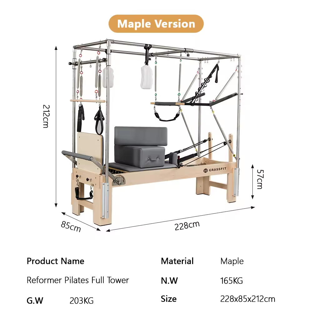 MND-W25 решает проблему пространственных ограничений без ущерба для функциональности, объединяя три аппарата для пилатеса в один единый блок. Продуманная конструкция обеспечивает полную универсальность упражнений, одновременно уменьшая занимаемую площадь оборудования примерно на 40 % по сравнению с отдельными частями.