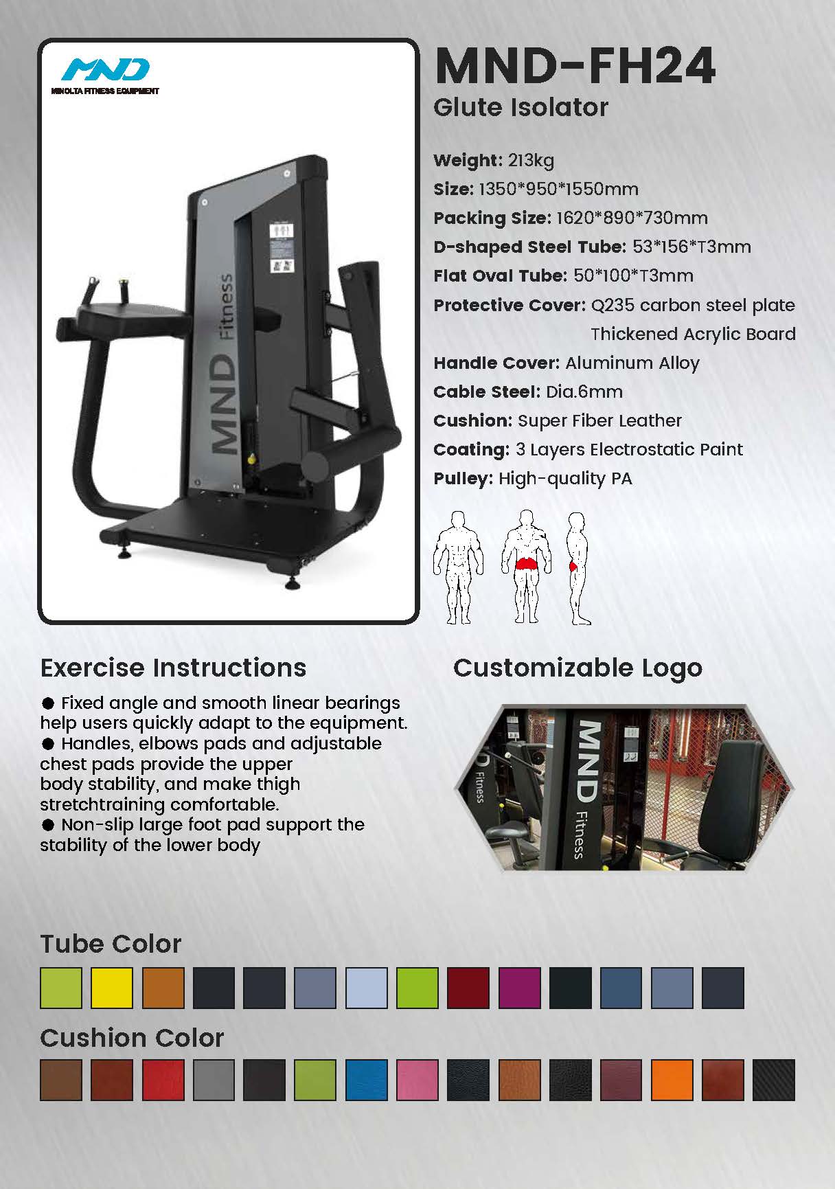 . Не ограничивайтесь приседаниями и становой тягой. Изолятор ягодиц FH24 обеспечивает уникальную фиксированную траекторию движения, которая нацелена исключительно на большую ягодичную мышцу, сводя к минимуму участие квадрицепсов и подколенных сухожилий, обеспечивая непревзойденный рост и активацию самой большой группы мышц тела.